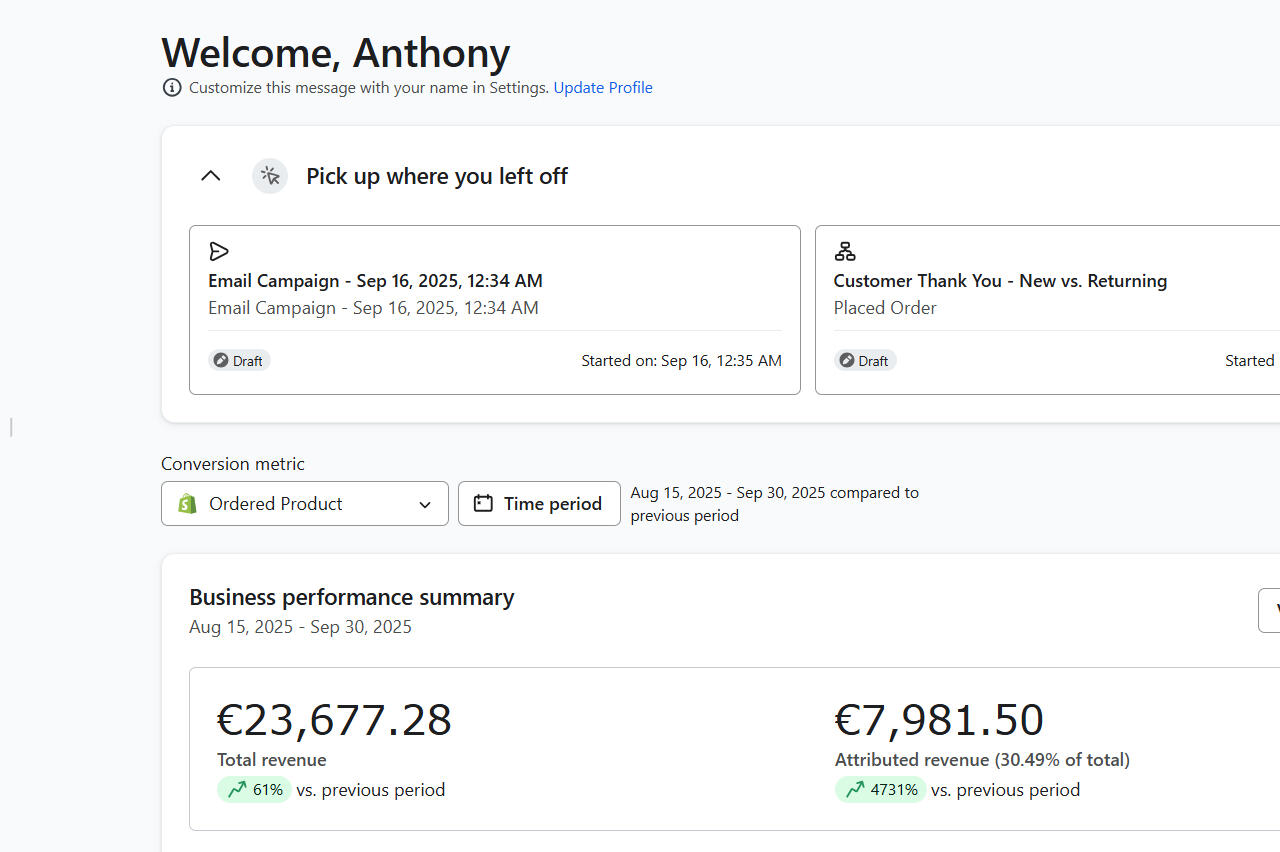✅ RESULTS ✅Real Numbers From Real Clients€23,677 Total Revenue in 45 DaysOne client's email campaign performance - 61% increase vs. previous period€7,981 Attributed Revenue (30.49% of total)473% increase vs. previous period from targeted email sequences aloneThis is what happens when your marketing actually works.