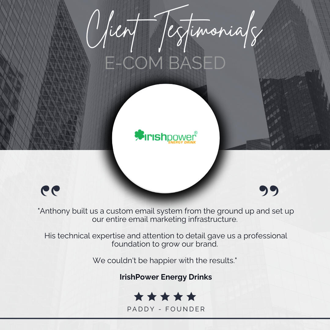 (€)500K+ generated for clients in 12 months.Average email ROI: (€)10K/month. Average client increase: 247%.